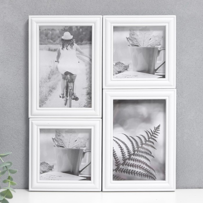 Фоторамка на 4 фото 10х10, 10х15 см "Классика" белая набор 4 шт 31,5х26 см