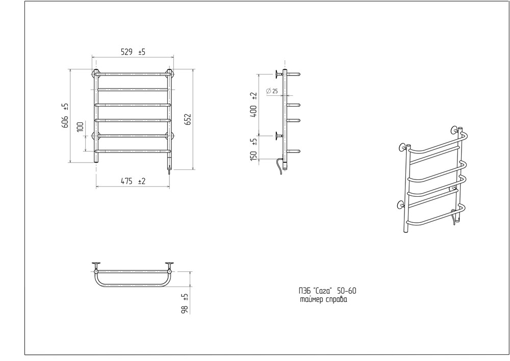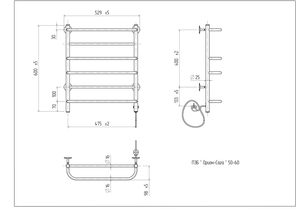 Полотенцесушитель электрический Орион Сага 50-60 (К-кнопка, Справа, 80 вт)